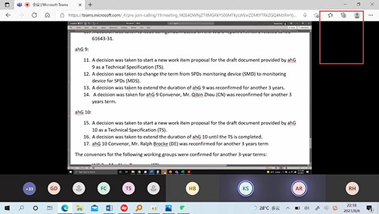 2021年8月6日,国际电工委员会IEC SC37A“低压电涌保护器SPD”委员会的年会由于疫情原因在线上举行,来自中国、日本、韩国、美国、德国、意大利、法国、英国、奥地利、荷兰、葡萄牙、俄罗斯、捷克、丹麦、俄罗斯、马来西亚、斯洛文尼亚、巴西等成员国的33名代表参与此次会议。
