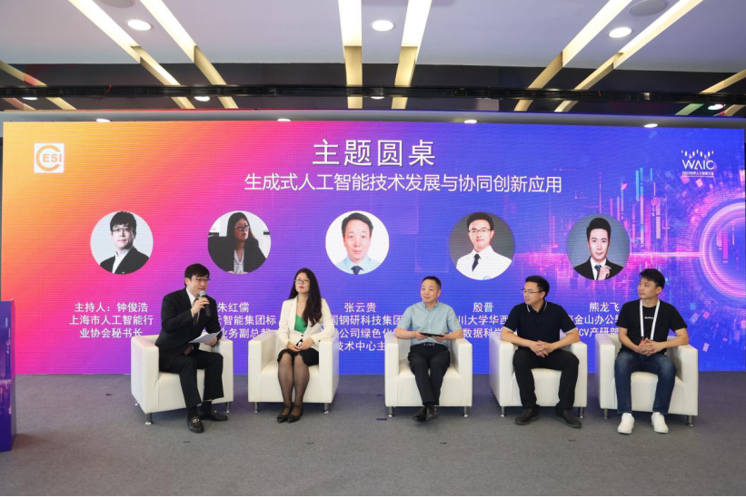 会方还邀请了来自云服务、钢铁、医疗和软件行业的专业嘉宾,以“生成式人工智能技术发展与协同创新应用”为主题展开圆桌论坛。圆桌讨论由上海市人工智能行业协会秘书长钟俊浩主持,阿里云智能集团智能标准化业务副总裁朱红儒、中国钢研科技集团有限公司绿色化智能技术中心主任张云贵、四川大学华西医院数据科学家殷晋、珠海金山办公软件有限公司CV产研部负责人熊龙飞共同参与。各位专家围绕生成式人工智能的技术发展、治理、标准和行业应用等方面分享了自己的观点与看法。