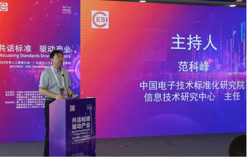 2023年7月7日,2023世界人工智能大会“共话标准,驱动产业”标准化论坛在上海世博中心成功举办。本场论坛由工业和信息化部指导,中国电子技术标准化研究院主办,国家人工智能标准化总体组、全国信标委人工智能分委会和上海市人工智能标准化技术委员会承办,新一代人工智能标准与应用工业和信息化部重点实验室、中国自动化学会人工智能技术与工业应用专业委员会和国际标准化长三角协作人工智能专业平台协办。中国工程院院士吴光辉、工业和信息化部科技司副司长任爱光、上海市经济和信息化委员会总工程师葛东波、上海市市场监督管理局标准创新处处长李菁、中国电子技术标准化研究院副院长陈大纪等领导出席会议并致辞。会议由中国电子技术标准化研究院信息技术研究中心范科峰主任主持。