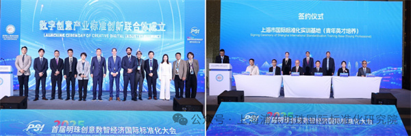 大会期间,由上海浦东明珠国际标准化研究院、上海质量管理科学研究院有限公司共同联合上海电影技术厂有限公司、艺术浦东(上海)艺术品有限公司、上海黄浦科创集团有限公司、上海米哈游网络科技股份有限公司、盛世万和(上海)文化科技有限公司、上海易维视科技有限公司、咪咕视讯科技有限公司、上海市标准化协会、上海市质量和标准化研究院、华东师范大学传播学院、上海大学上海温哥华电影学院、东华大学环境艺术设计研究院等25家“政产学研用”单位宣布成立“数字创意产业标准创新联合体”,共同致力于推动国际国内标准融合,构建产业协同新生态。