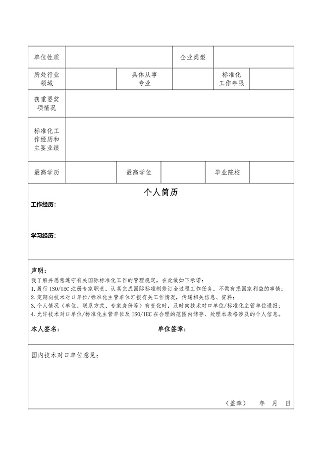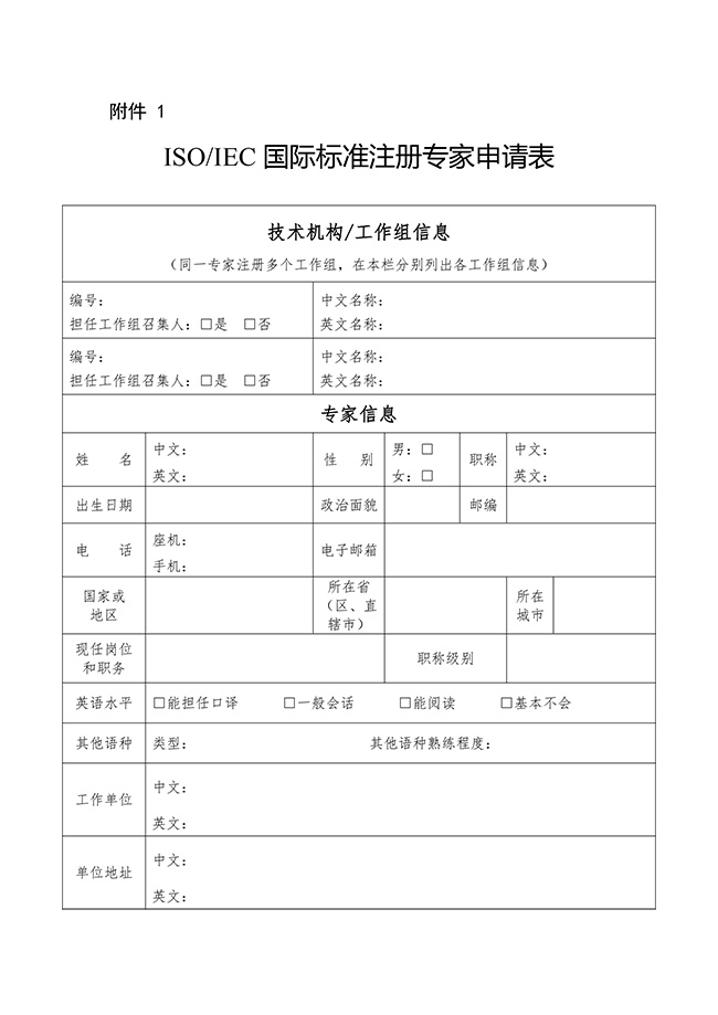 附件1:ISO/IEC国际标准注册专家申请表.docx