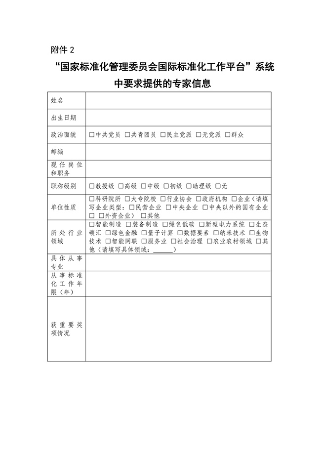 附件2:“国家标准化管理委员会国际标准化工作平台”系统中要求提供的专家信息.docx